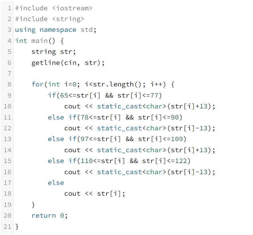 문자열이 주어졌을 때, "ROT13"으로 암호화한 다음 출력하는 프로그램을 작성하시오.
