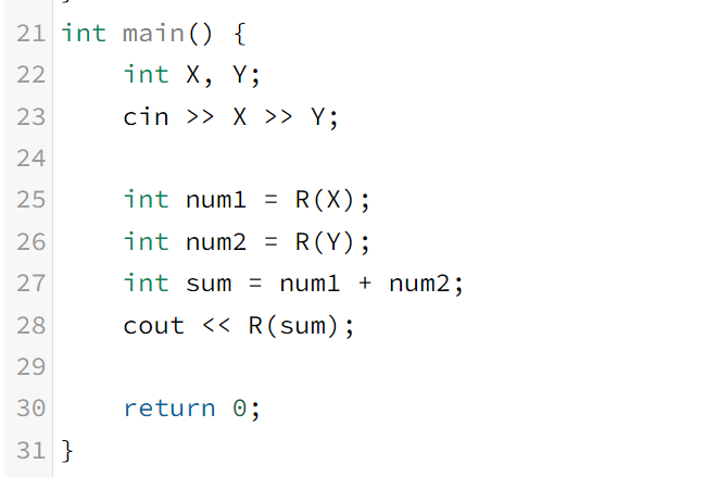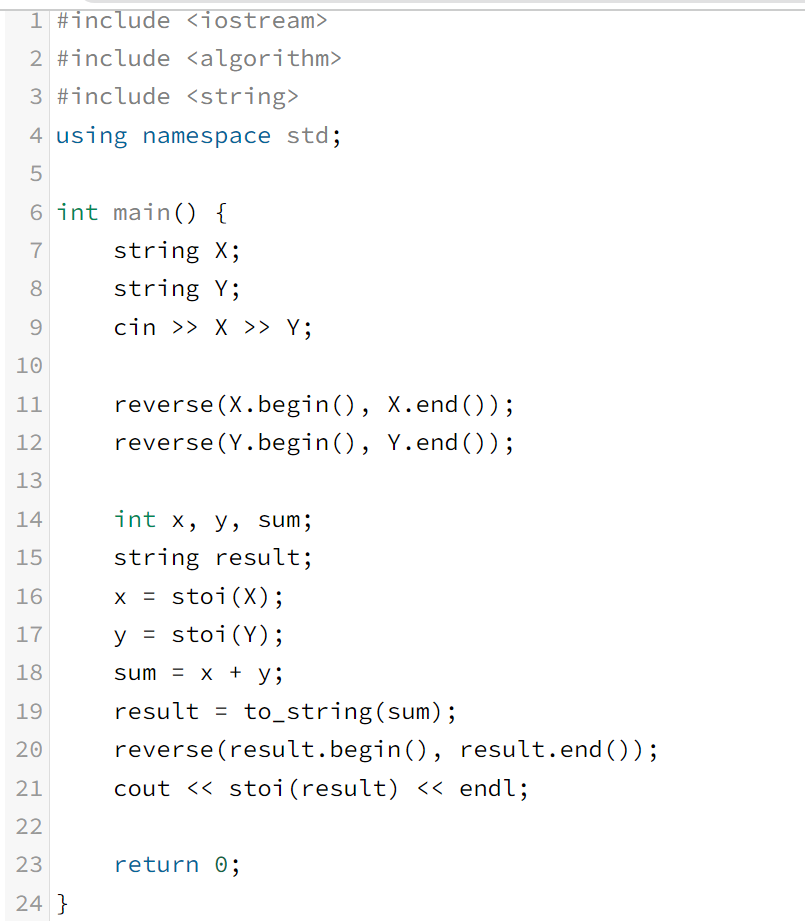 두 양의 정수 X와 Y가 주어졌을 때, Rev(Rev(X) + Rev(Y))를 구하는 프로그램을 작성하시오