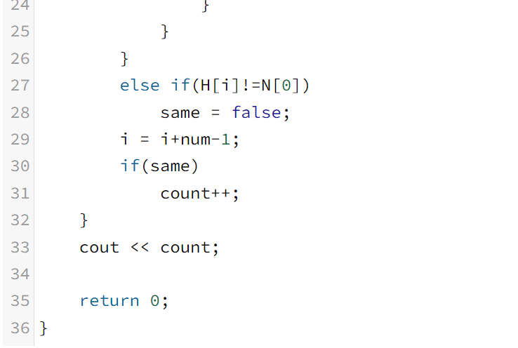 입력의 두 번째 줄에는 진아가 H에서 등장 횟수를 알고 싶은 문자열 N이 주어진다.(0 < |N| ≤ 10)