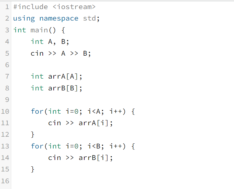 첫째 줄에는 집합 A의 원소의 개수 n(A)와 집합 B의 원소의 개수 n(B)가 빈 칸을 사이에 두고 주어진다. (1 ≤ n(A), n(B) ≤ 500,000)이 주어진다. 둘째 줄에는 집합 A의 원소가, 셋째 줄에는 집합 B의 원소