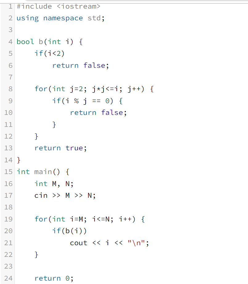 M이상 N이하의 소수를 모두 출력하는 프로그램을 작성하시오.
